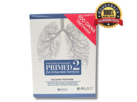 Ukoliko primena preparata PRIMED 2 (neprekidno, u trajanju od 100 dana, u skladu sa priloženim uputstvom), ne doprinese smanjenju osećaja gušenja i pritiska u grudima, zatim, olakšanju iskašljavanja sekreta, boljoj toleranciji fizičkog napora, kao i ublažavanju kašlja i sviranja u grudima, obratite nam se nakon 100 dana od datuma porudžbine, i garantujemo povraćaj novca u punom iznosu cene koštanja proizvoda.